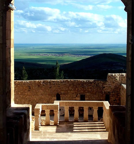 Önümüzde Yukarı Mezopotamya'nın uçsuz bucaksız bir okyanus gibi uzanan düzlükleri, taraça taraça ona doğru inen boz ve çıplak arazinin altından başlayarak uzanıyor ve bu '